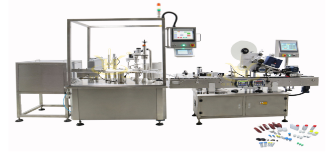 Hubei Guitxing company to create a diagnostic reagent filling machine, is by the bottle -filling - pre-screwed lid - screw cap - labeling coder combination, the whole machine using PLC programmable controller automatic control of related functions, so as to achieve a real operation is simple, low precision error, equipment maintenance simple, safe and reliable low-cost operation.