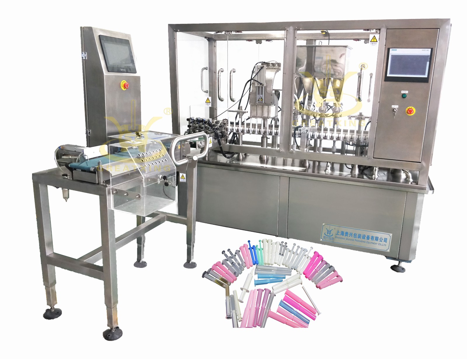 貴特興半自動灌裝機(jī)有直流式液體灌裝和活塞式膏體灌裝,直流式液體灌裝工作原理比較簡單,恒流計(jì)時(shí)的灌裝方式,在液位壓力一定的條件下,通過調(diào)整灌裝的時(shí)間來的控制灌裝量。半自動活塞式灌裝機(jī)灌裝高濃度流體進(jìn)行灌裝的灌裝機(jī),它是通過氣缸帶動一個(gè)活塞及轉(zhuǎn)閥的三通原理來抽取和打出高濃度物料,并以磁簧開關(guān)控制氣缸的行程,即可調(diào)節(jié)灌裝量。