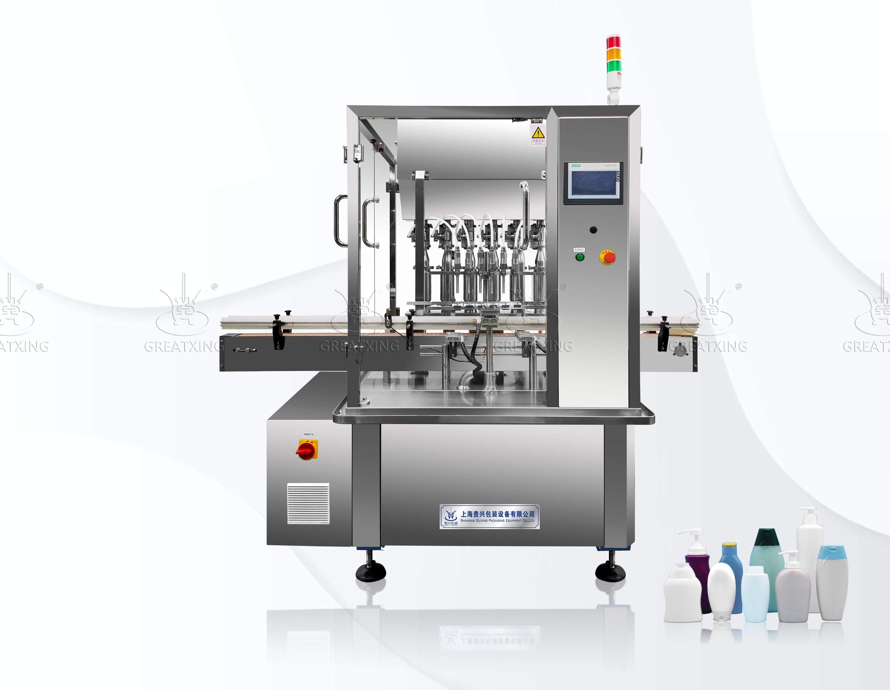 洗手液/消毒液/化妝品/日用品 伺服驅(qū)動多組定量泵直線灌裝機